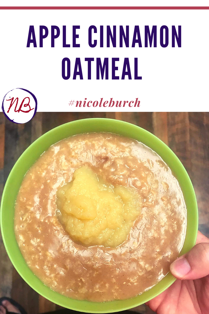 Mix all ingredients together, except applesauce, and cook on High in a small pot, stirring frequently until thickened. Pour into your bowl an top with 1/4 Cup unsweetened applesauce. Mix together, or grab a small dab of applesauce with each bite.